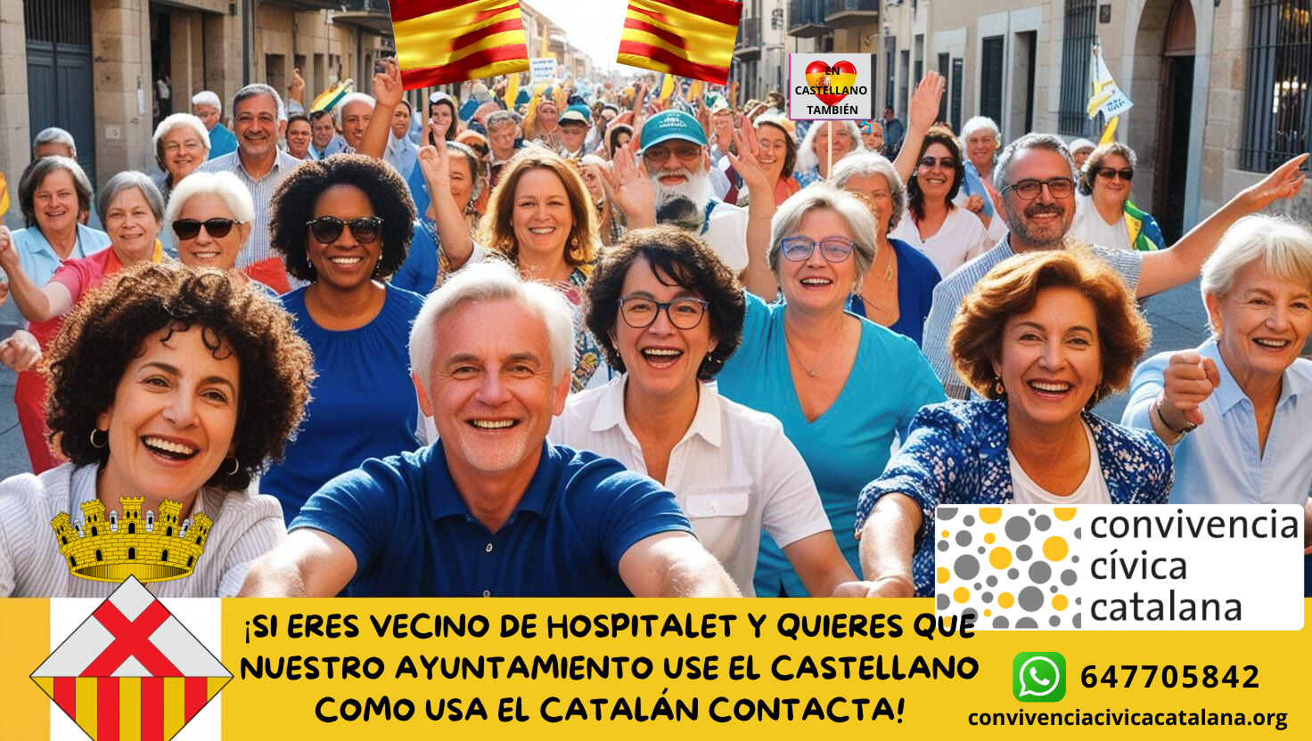 Convivencia se felicita que el ayuntamiento de Hospitalet de Llobregat haya atendido el requerimiento de instalar banderolas también en castellano.