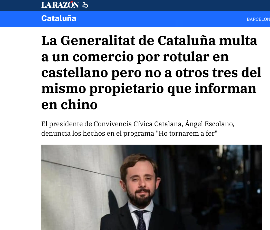 La Generalitat de Cataluña multa a un comercio por rotular en castellano pero no a otros tres del mismo propietario que informan en chino