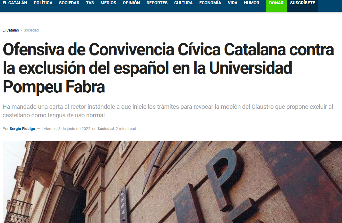 Convivencia Cívica Catalana contra la exclusión del español en la Universidad Pompeu Fabra