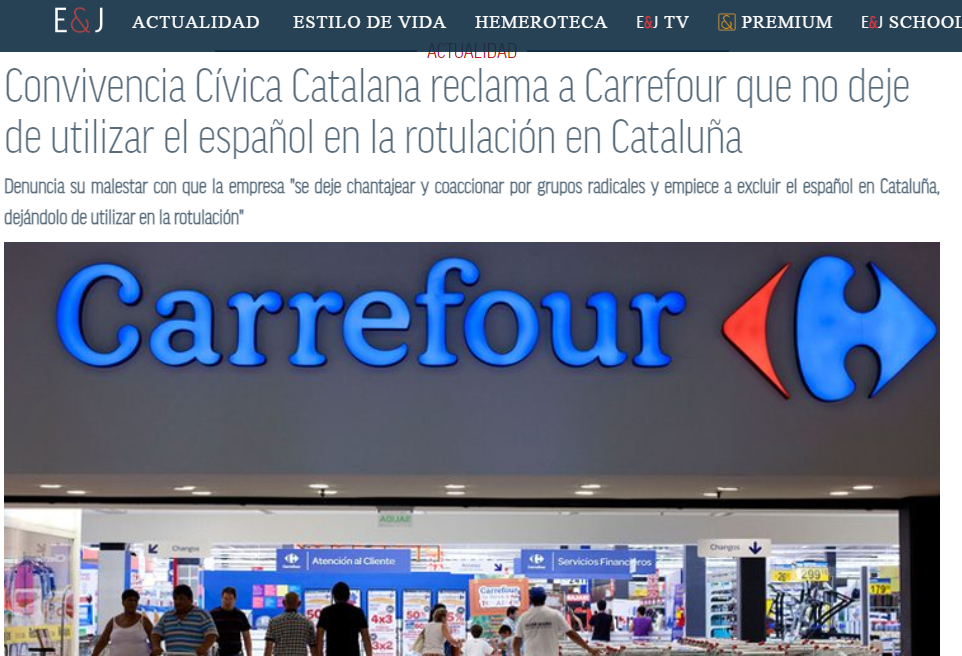 Reclamamos a Carrefour que no deje de utilizar el español en la rotulación en Cataluña
