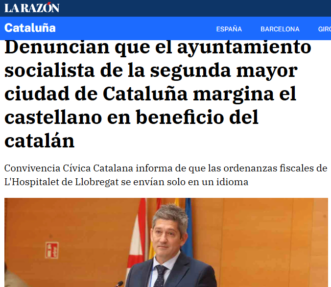 Convivencia Cívica Catalana ha denunciado que el Ayuntamiento de L’Hospitalet de Llobregat, margina a la lengua castellana.