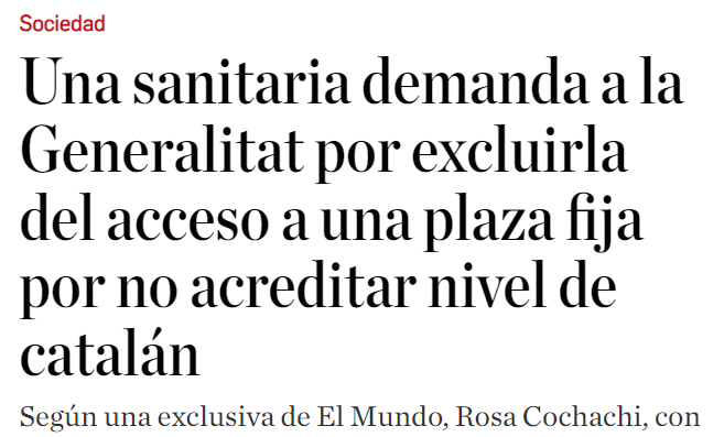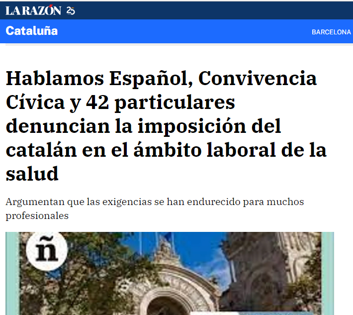 Hablamos Español, Convivencia Cívica y 42 particulares denuncian la imposición del catalán en el ámbito laboral de la salud.