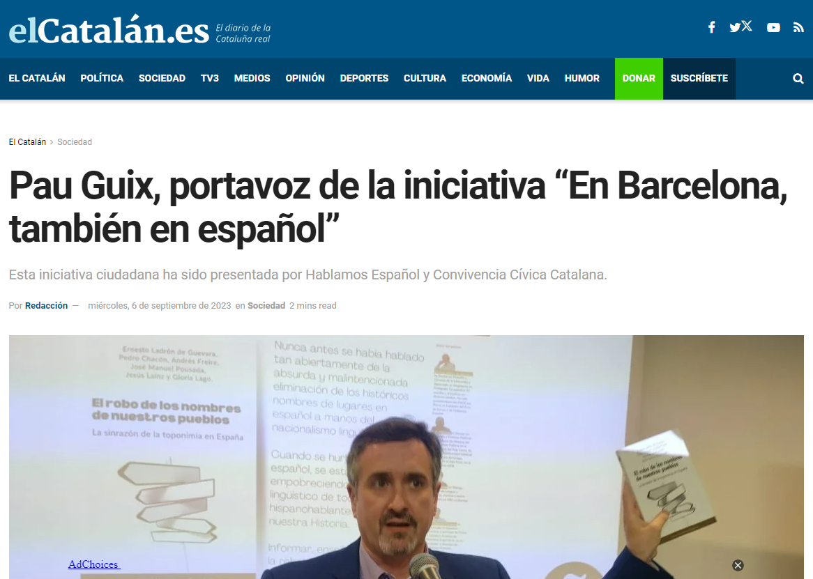PAU GUIX, CON HE Y CONVIVENCIA, PORTAVOZ DE “En Barcelona, también en español”