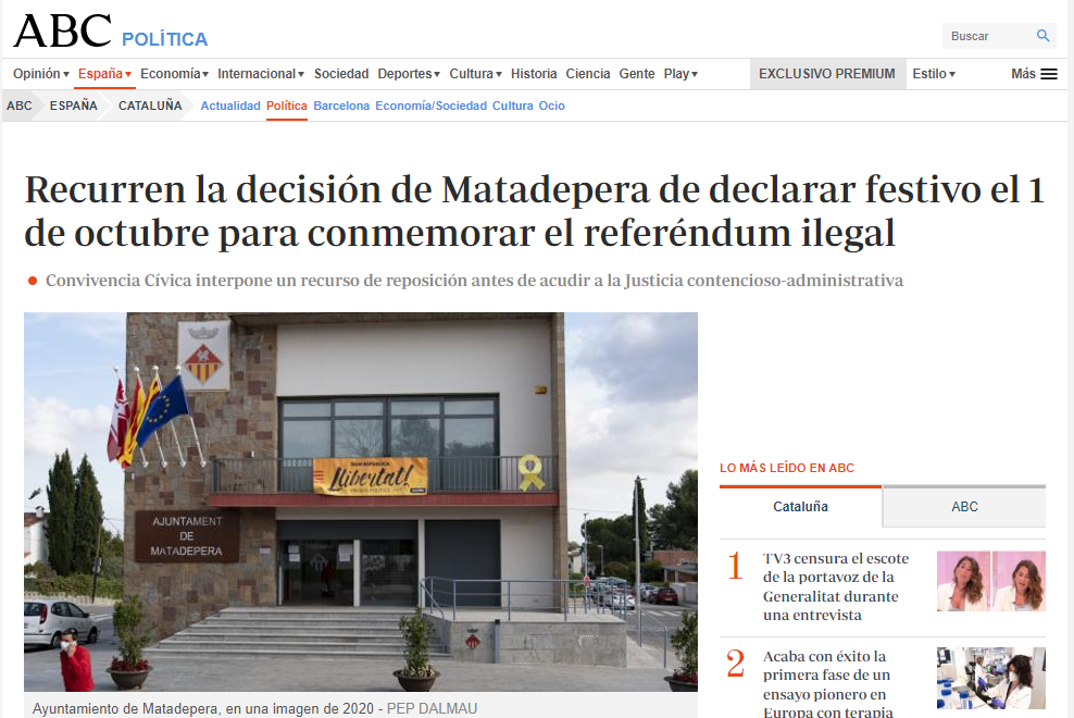 Convivencia Cívica Catalana ha interpuesto un recurso de reposición ante el Ayuntamiento de Matadepera