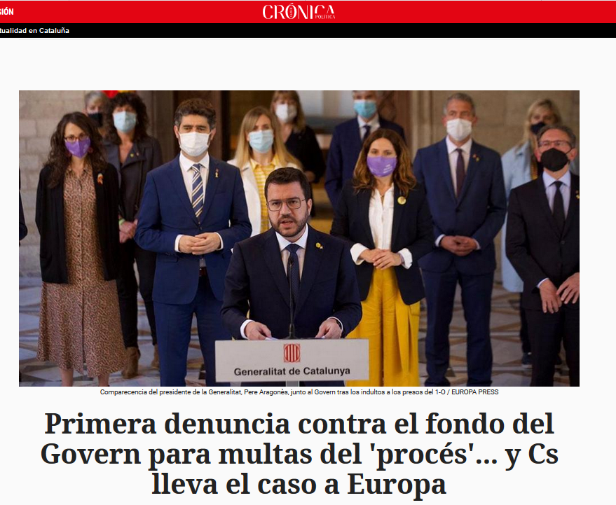 Convivencia denuncia frente al gobierno de la Generalitat por el pago de las cuantías reclamadas por el tribunal de cuentas